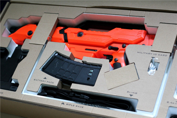▲在PP-GUN主件枪放置位,设有三块长方形纸板可以有效防止主件脱位。