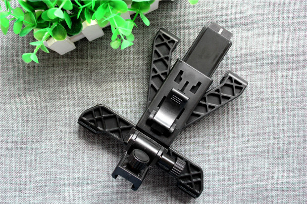 ▲PP-GUN移动设备配备伸缩支架及卡扣,支架支持最高210mm最低110mm宽设备(还能高但是卡扣会失效),卡扣支持最厚17mm最薄10mm的设备,整个支架位置设有5mm厚泡沫可以有效保护配对设备的外观。支架配备独立调位位置转向可支持120度旋转,满足任何角度的游戏体验。