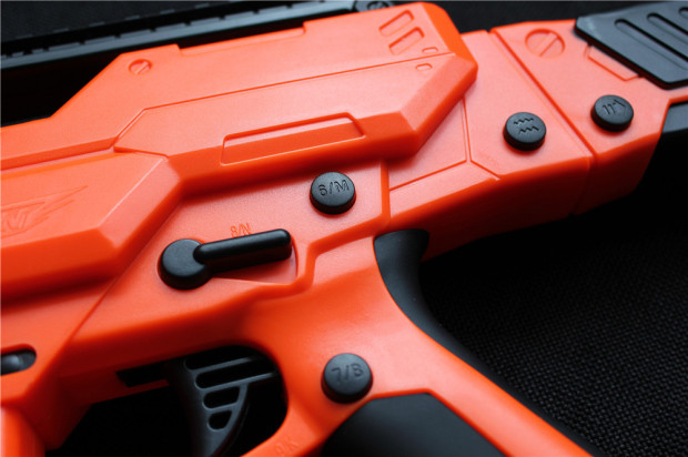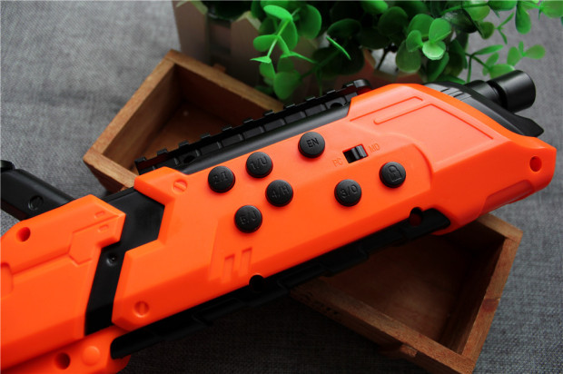 ▲PP-GUN本体控制选用10个实体独立按钮,每个按钮适用不同的体现功能,主要有电源开关、方向摇杆、小震动电机开关、后坐力电机开关、视觉锁定按钮、PC移动档按钮、弹JIA释放按钮及控制按钮,按钮分操作及控制功能(操作功能单次按压不回弹,控制功能单次按压回弹)按钮阻尼适中回弹清脆,各类按钮区分位置明显。正常使用一般采用右手持枪左手托枪,合理化的功能操作位置具有很高的游戏体验感。