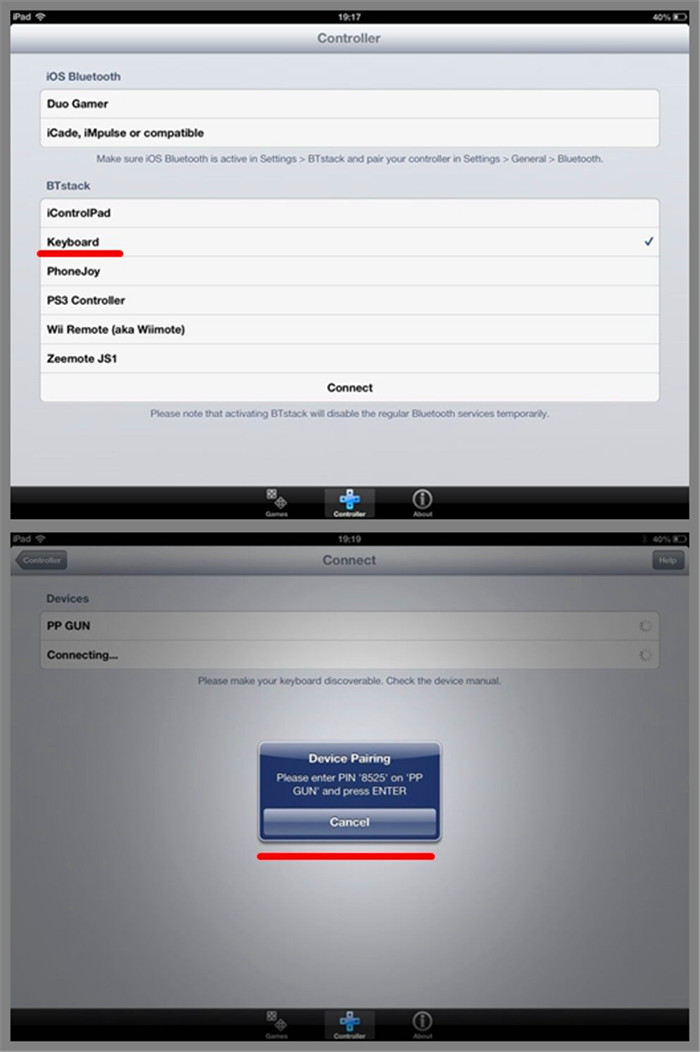 ▲PP-GUN不仅支持平板及手机还支持PC电脑操作,使用电脑操作之前需要用到两个小配件USB蓝牙适配器及2.4GUSB适配器,首先需要进行USB蓝牙适配器的安装及测试接着2.4GUSB适配器安装,PP-GUN需打到PC档位置进行连接,接着如同操作模拟器一样根据PP-GUN的按键自定游戏操控键