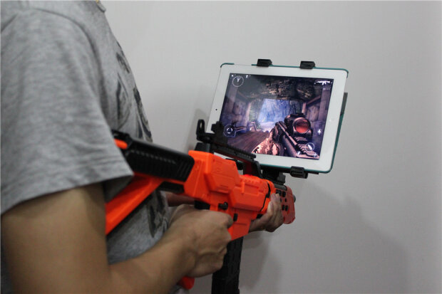 ▲PP-GUN相对于枪模安装更加简单方便,只需把PP-GUN电源插入卡槽就算整体结构整合完成,接着加入各种连接配件平板支架及背带卡座等,特备提醒注意平板支架的与PP-GUN之间的固定必须确认可靠位置不会移动,再进行游戏体验。